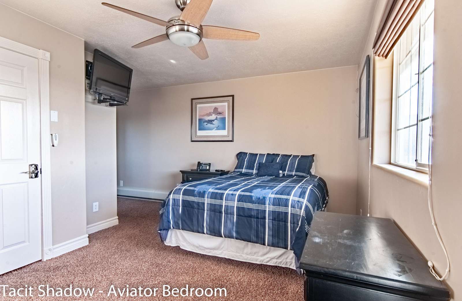 Private bedroom w/ 37" TV/DVD & balcony at Tacit Shadow Resort. Includes private bathroom and full use of Resort. Located at the base of the Brian Head resort mountain. Central to Zion, Bryce Canyon, Cedar Breaks, & Grand Canyon.