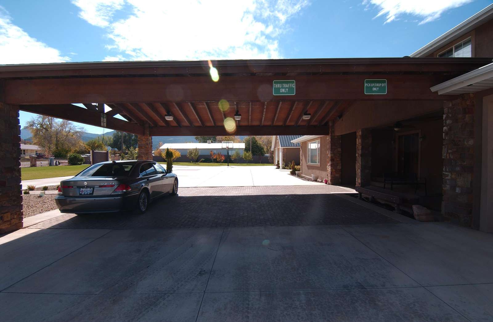 Tacit shadow has covered porte-cochère parking, large vehicle and trailer parking, as well as a single rv hookup station with water, sewer, electrical and internet.