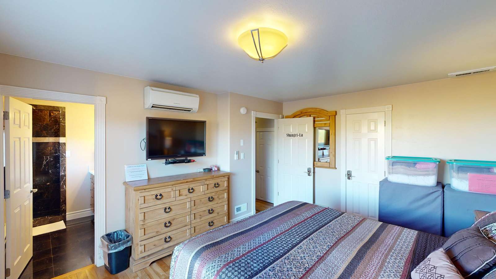 Private King Bedroom w/ 42" TV/DVD & Direct Deck Access at Tacit Shadow Resort. Includes private bathroom and full use of Resort. Located at the base of the Brian Head resort mountain. Central to Zion, Bryce Canyon, Cedar Breaks, & Grand Canyon.